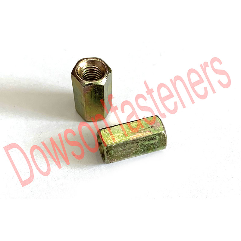 Nakrętka sześciokątna ze stali węglowej Ocynkowana Żółta to rodzaj sześciokątnej nakrętki łączącej ze stali węglowej powszechnie stosowanej w budownictwie inżynieryjnym, która jest wykonana ze stali węglowej i ma dobrą wytrzymałość i wytrzymałość, odpowiednią do stosowania w ogólnych sytuacjach. Powierzchnia jest ocynkowana na żółto, co może skutecznie poprawić odporność na korozję i żywotność nakrętki. Produkt ma różnorodne specyfikacje i może spełniać różne wymagania.